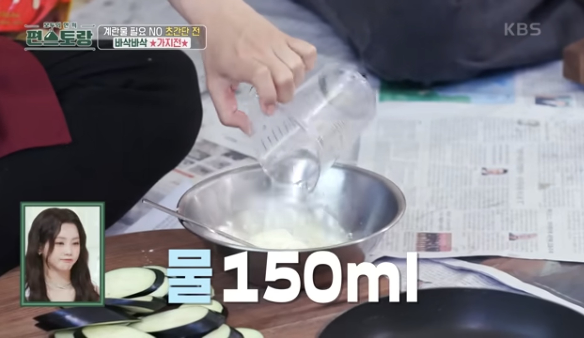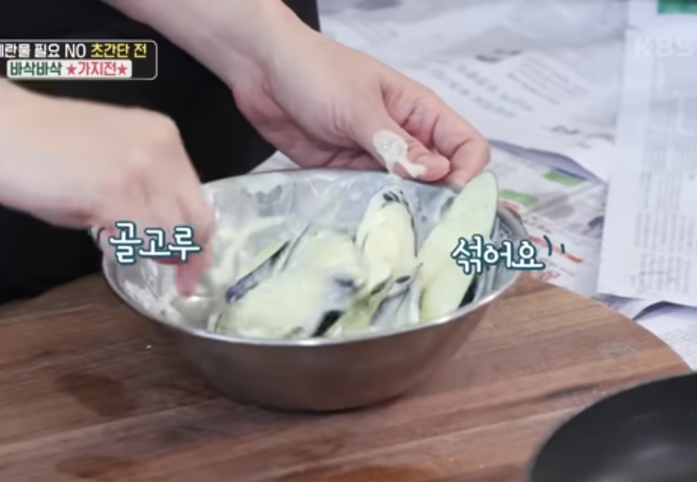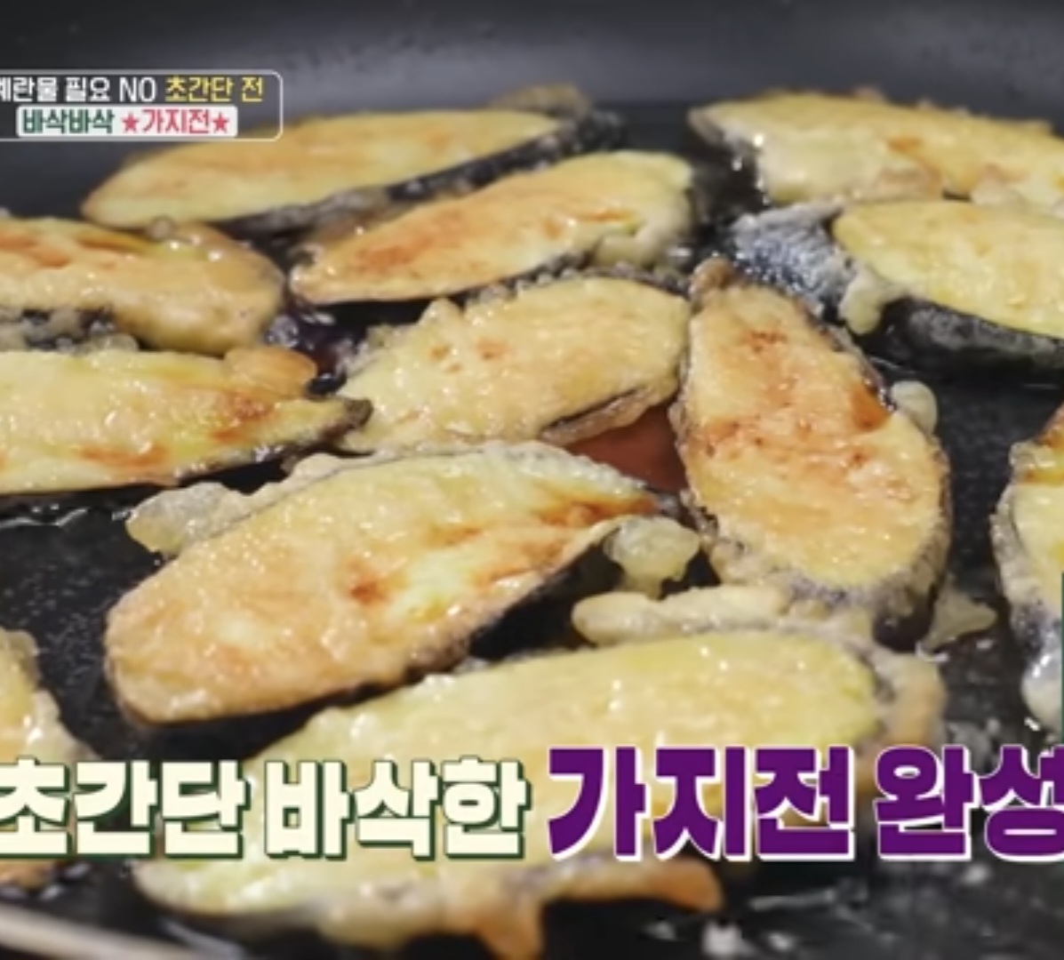 계란을 넣지 않아야 물컹하지 않고 바삭한 가지전을 먹을수 있습니다.