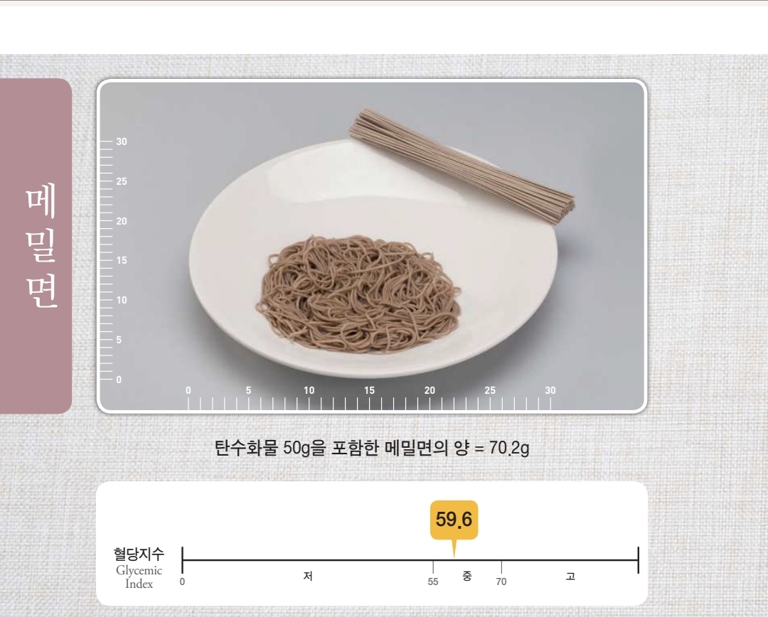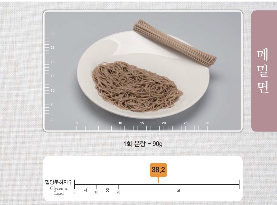 메밀면의 혈당지수는 메밀을 이용하여 조리한 메밀전병이나 메밀묵과 비교하여 크게 차이가 없습니다.