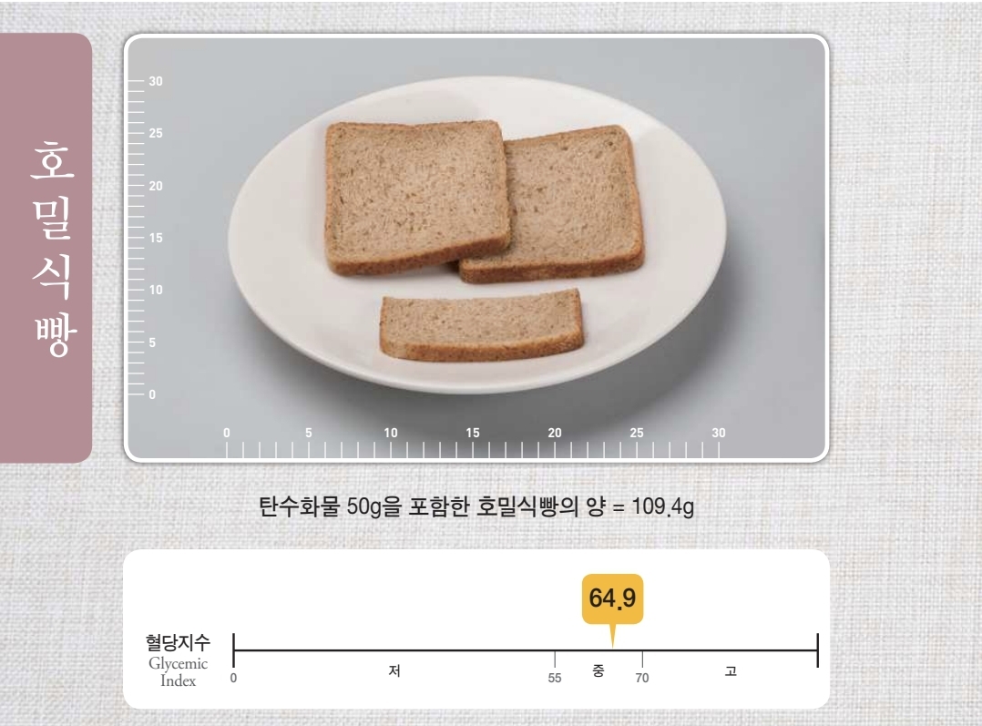 하지만 우리나라에서 판매되고 있는 대부분의 호밀식빵은 소량의 호밀가루( 약 10~30%)가 포함되어 흰 식빵의 혈당지수와 차이가 없습니다.