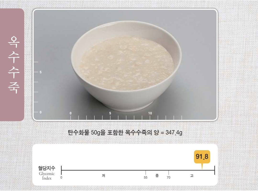 ◈ 옥수수죽의 혈당지수는 분쇄와 전분의 호화과정에 의해 찐 옥수수 보다 상승하게 됩니다.