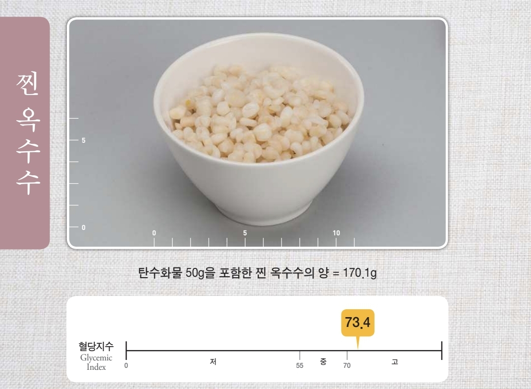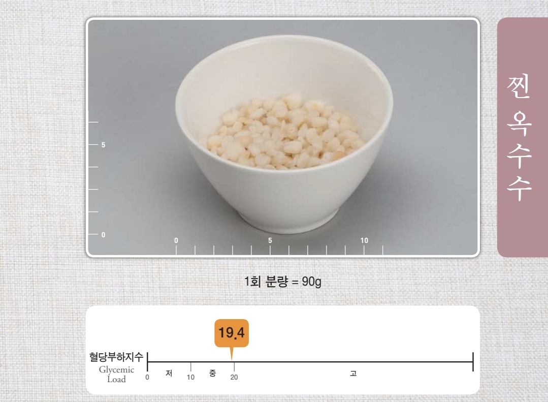 ◈ 찐 옥수수는 고혈당지수에 해당되지만 1회 섭취량(90g)이 적어 중 혈당부하지수에 속합니다.
