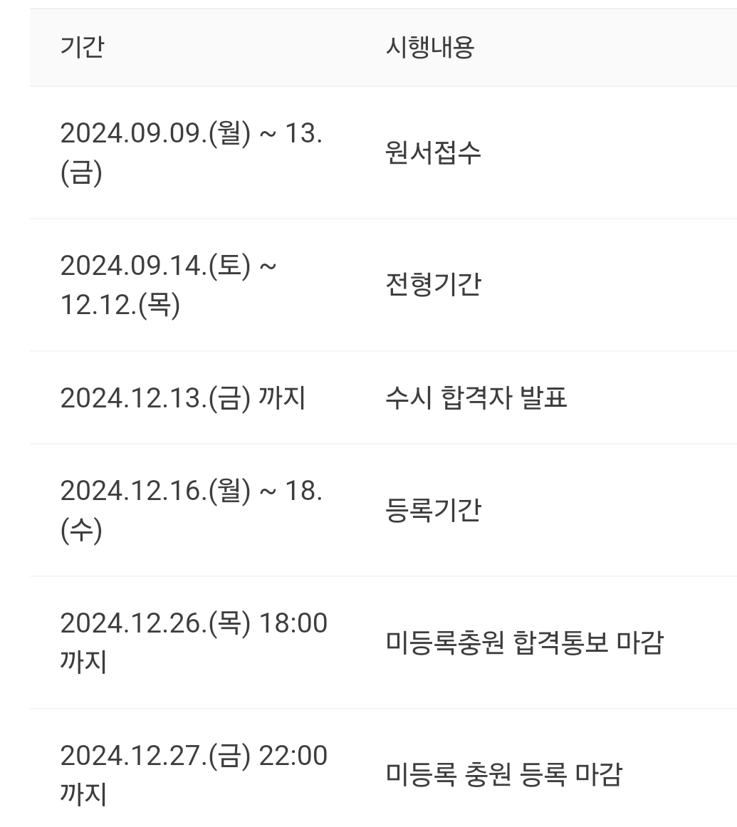 접수기간에도 복잡하겠지만 6개의 지원이라 합격자 발표 후 의 관리가 더욱 복잡하고 중요한 시기이니 접수할때 미리미리 달력에 메모를 해두는것을 추천합니다.