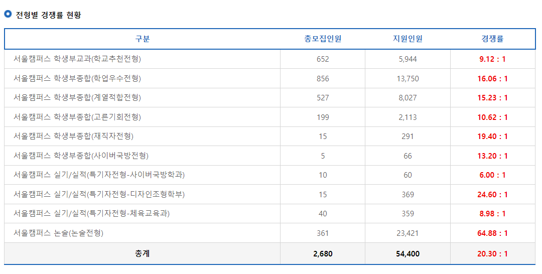 ● 전형 유형 (학생부, 수능, 면접, 논술 등)