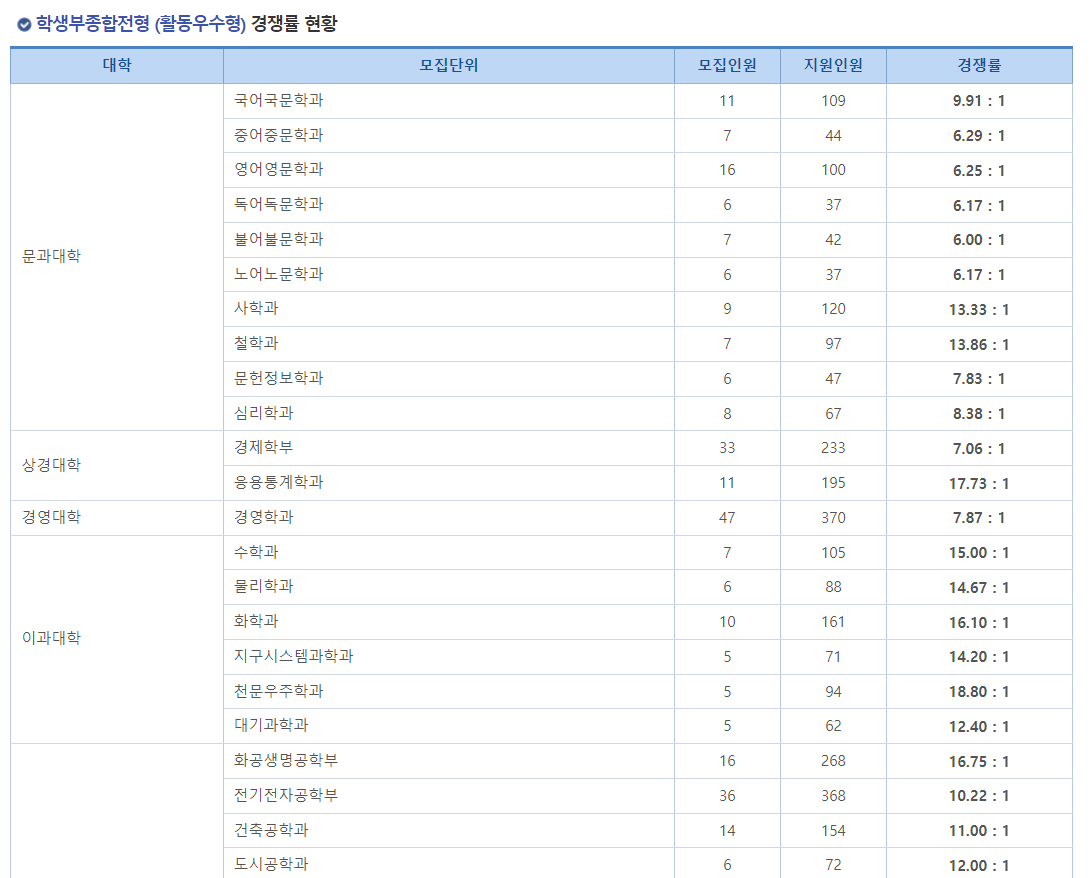 먼저 수시 원서 접수 마감된 최종경쟁률을 확인하고 그에 맞게 부족한 부분을 더 보강할 수 있도록 최선을 다해야 합니다.