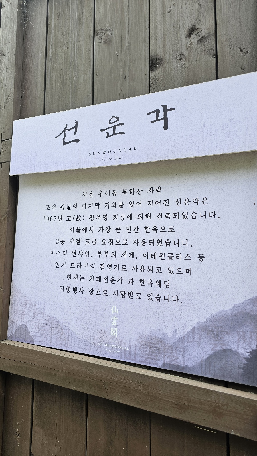 우이동 선운각은 최근 한옥 카페로 새단장한 멋진 장소입니다. 이곳은 원래 한옥 예식장이었으나, 현재는 카페와 함께 다양한 행사도 진행되고 있습니다.