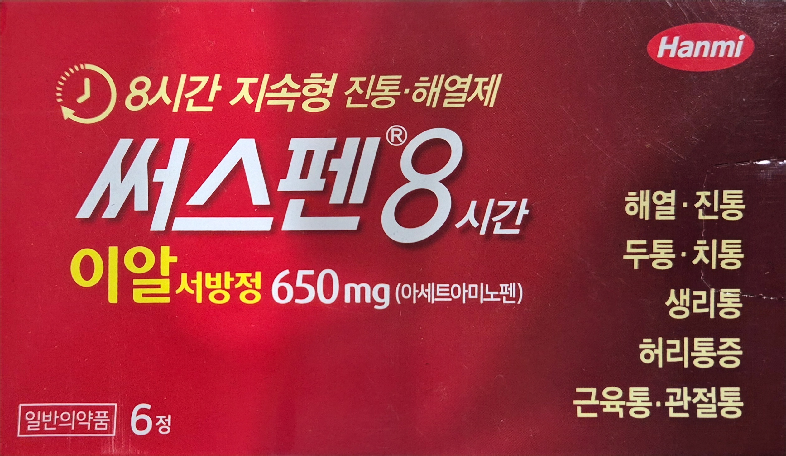 써스펜은 아세트아미노펜 성분의 진통제입니다.