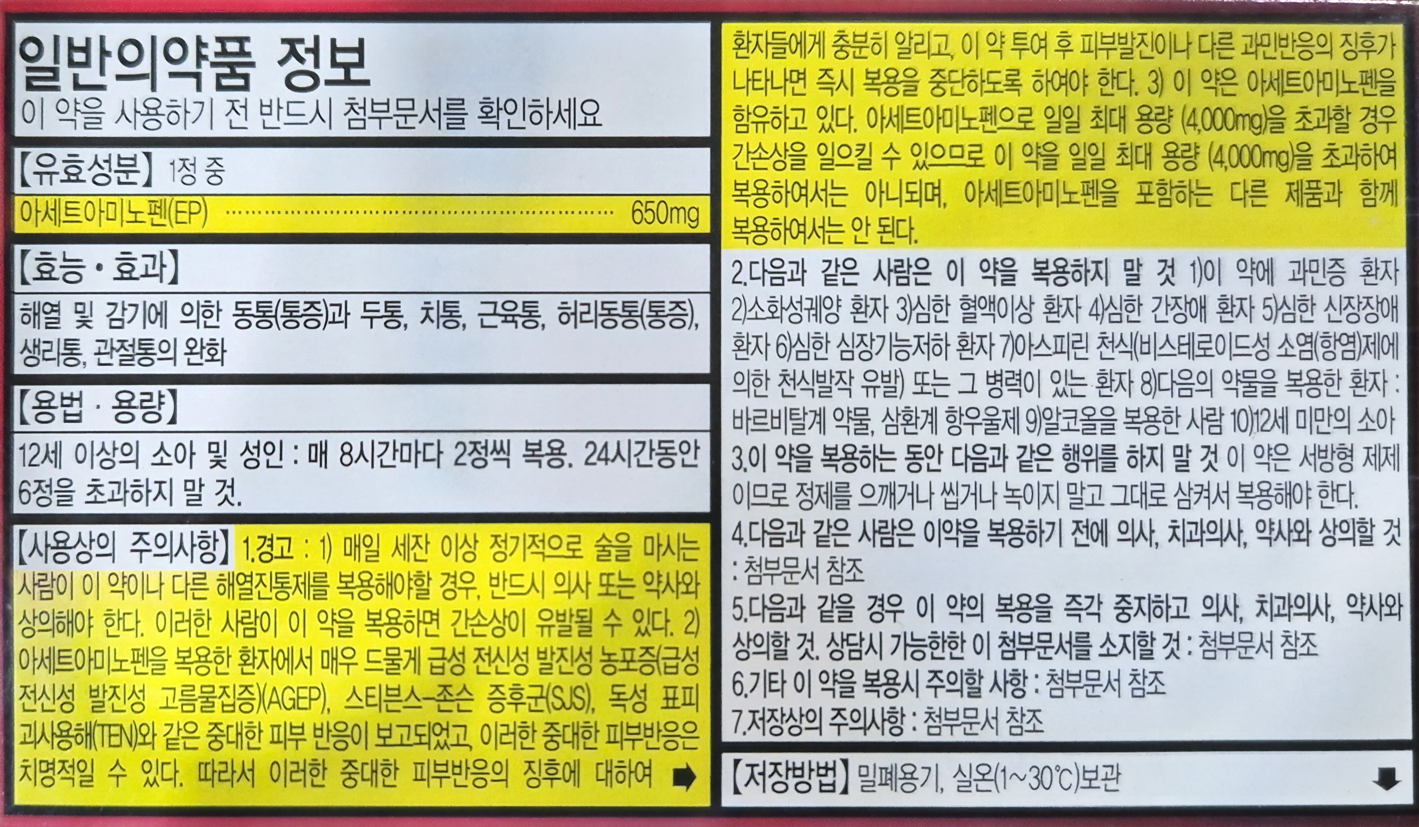 여러 용어가 복잡하므로 ‘아세트아미노펜’과 ‘아세트아미노펜이 아닌 것’으로 구분하고, 각 성분의 약 하나씩만 구비해 두면 됩니다.