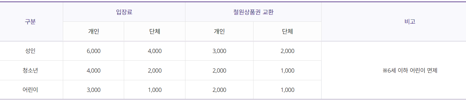 성인의 경우 입장료 6000원을 내시면 철원상품권 3000으로 교환지급합니다.