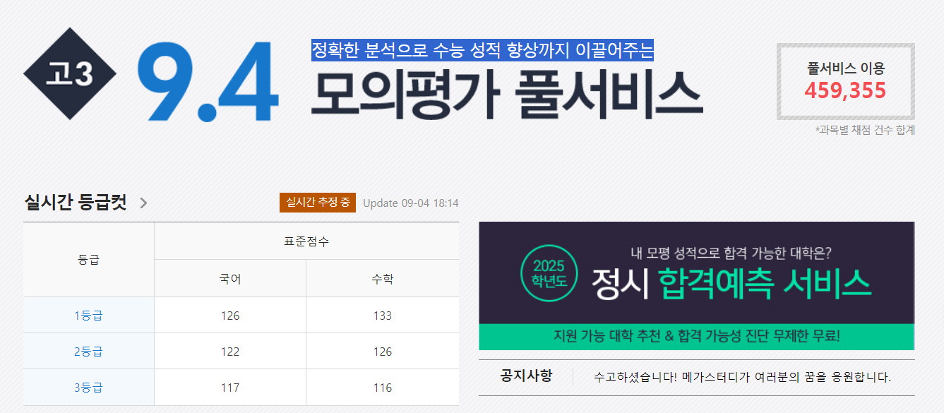 먼저 9월 모의 고사 등급컷 알아볼까요